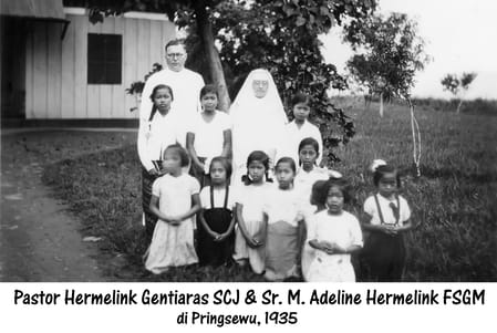 Sampai di Pelabuhan Sundakelapa, mereka disambut Suster-suster Ursulin dan menginap di Susteran Jalan Pos 2 Jakarta. Esok harinya mereka melanjutkan perjalanan ke Lampung. Di Pelabuhan Panjang, Sumatera, mereka disambut Suster-suster Hati Kudus, P. Van Oort SCJ, P. A. Hermelink Gentiaras SCJ, dan P. Kuipers SCJ. Para penjemput merayakan Misa dan mengumandangkan lagu “Te Deum Laudamus” sebagai ungkapan syukur. Pada 4 Juni 1932 mereka tiba di Pringsewu.