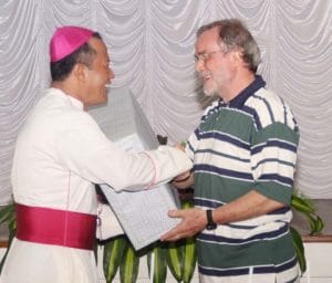 Usai Perayaan Ekaristi acara dilanjutkan ramah tamah di aula. Dalam kesempatan itu, Rm. Paul Billaud juga menegaskan hal yang sama, bahwa mereka hadir untuk memberitakan Injil, bukan untuk yang lainnya. Sebagai ucapan terimakasih, Uskup Yohanes Harun Yuwono bersama Vikjen Tanjungkarang, RD. JB. Sujanto memberikan tanda kenangan kepada Rm. Paul Billaud. *** (M. Fr).