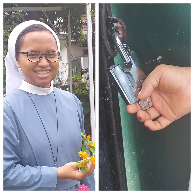 Mereka menatapku dengan wajah bingung. Salah satu dari antara mereka berteriak, “Suster, itu sudah di buka!” Aku pun melihat posisi gembok. Ah… gembok itu menggantung tak terkunci.
