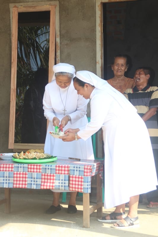 Proses bedah rumah Katinem melibatkan banyak umat dan masyarakat sekitar. Ada yang menyumbangkan batu untuk pondasi, pasir, bata, genteng, dan tenaga.