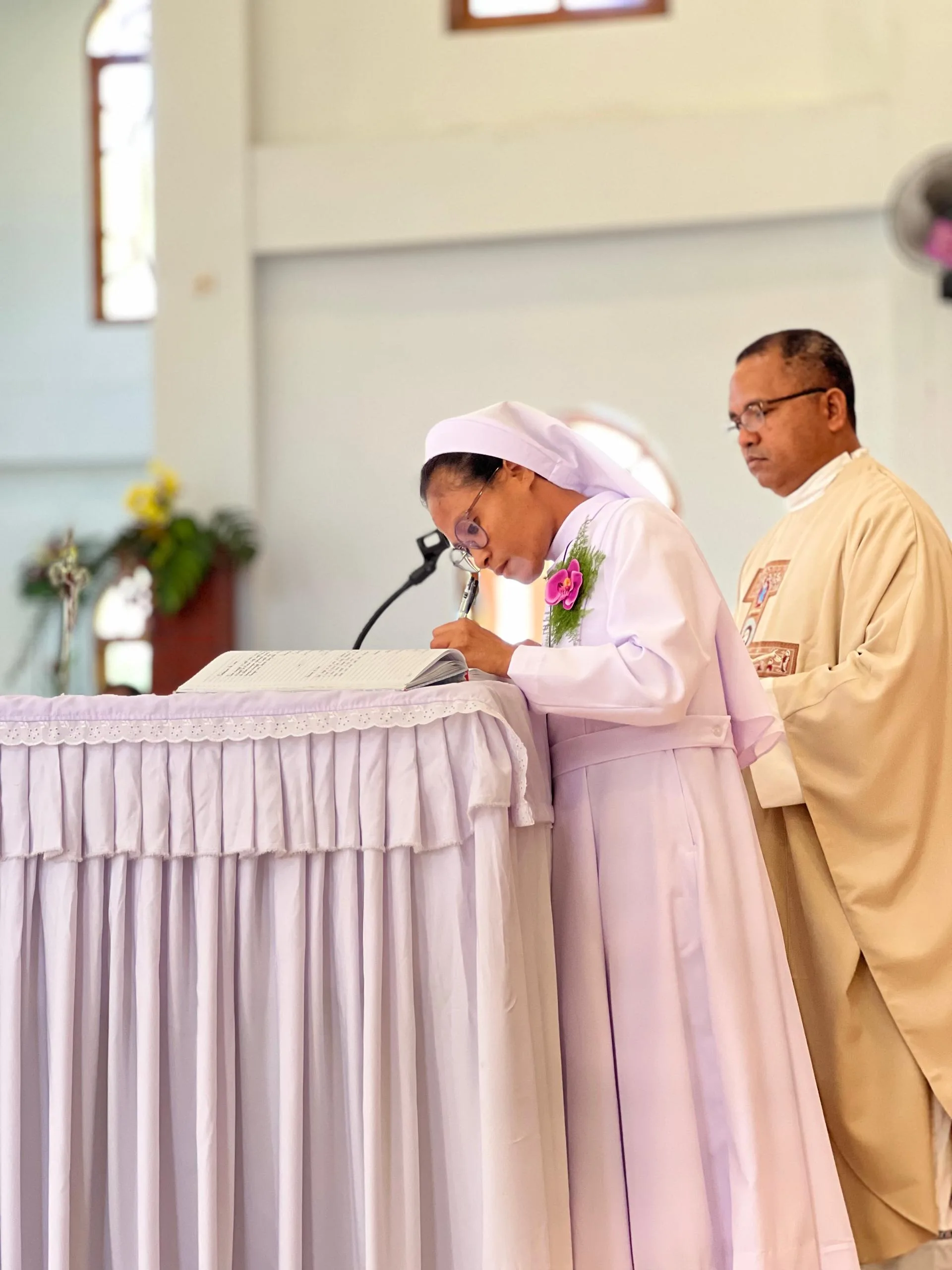 Lima suster itu adalah: Sr. M. Rita, Sr. M. Clarine, Sr. M. Florine, Sr. M. Geovana, dan Sr. M. Sebastiana. Perayaan Syukur dipimpin oleh Uskup Virgilio Kardinal do Carmo da Silva SDB.