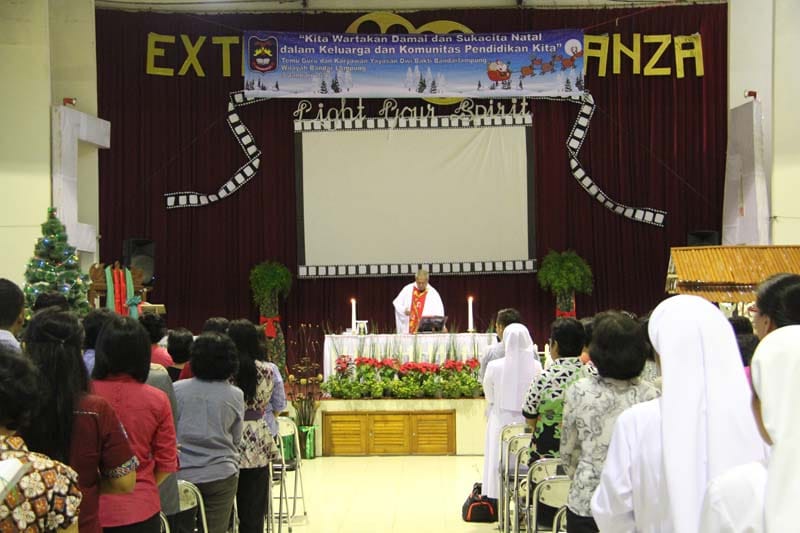 Seluruh rangkaian acara dimulai dengan ekaristi syukur yang dipimpin oleh Rm. A. Satu Manggo Pr. “Kerinduan Tuhan untuk dapat menyapa manusia dengan bahasa manusia membuatNya menjelma menjadi bayi kecil yang lahir di Betlehem. Dia hidup bersama kita, menderita bersama kita, dan bahkan mati seperti kita. Semoga damai dan sukacita natal memampukan kita untuk menyapa orang-orang yang kita layani baik dalam keluarga maupun komunitas” demikian ungkap Rm. Manggo dalam homilinya.
