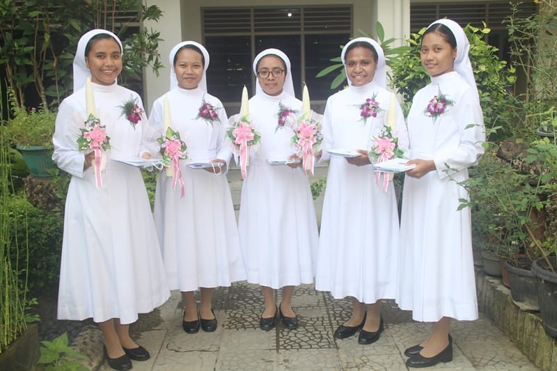 Enam postulan yang menerima Pakaian Biara: Theodora M. Angella Styaningrum, Shuresna Agatha Simbolon, Theresia Dewi Rovita Sari, Maria Kristiana, Ch. Setia Wati Silaen, Maria Rosari Nipu.