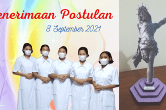 Enam postulan yang menerima Pakaian Biara: Theodora M. Angella Styaningrum, Shuresna Agatha Simbolon, Theresia Dewi Rovita Sari, Maria Kristiana, Ch. Setia Wati Silaen, Maria Rosari Nipu.