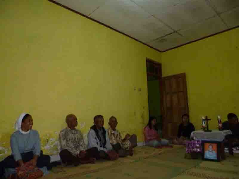 Doa adalah sesuatu yang menguatkan dalam setiap situasi, dan kehadiran semakin menambah semangat dan sukacita  bagi yang kita kunjungi. Hari ini sekitar pukul 18.00 WIB, Sr.M.Alice, Sr.M. Jeanne, Sr.M. Hedwigis dan Sr.M. Antoni, hadir di lingkungan kalasan, jogja untuk mendoakan Arwah kakaknya Almarhum Sr.M.Hermien, yang di panggil Tuhan 7 hari yang lalu .