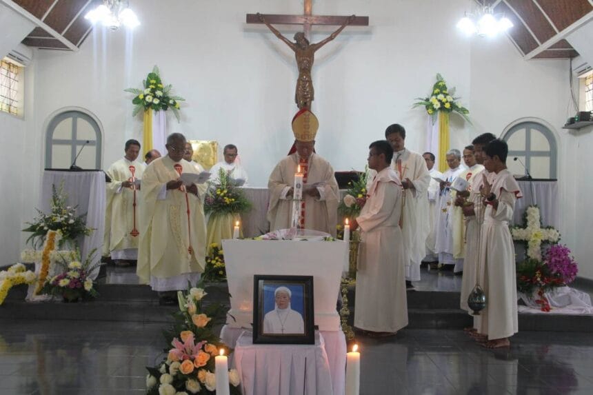 “Hidup adalah rahmat dan hanya karena kerahiman Allah kita dapat memperoleh hidup kekal” demikian ungkap Mgr. Yohanes Harun Yuwono dalam kotbahnya ketika misa requiem Sr. M. Redempta. Dalam perayaan Ekaristi requiem, Bapa Uskup didampingi oleh Rm. Titus Purbo Saputro SCJ, kakak dari Sr. M. Redempta, Rm Agustinus Sudarno OSC, dan RD. Andreas Sutrisno Romo Paroki Santo Yusuf Pringsewu.
