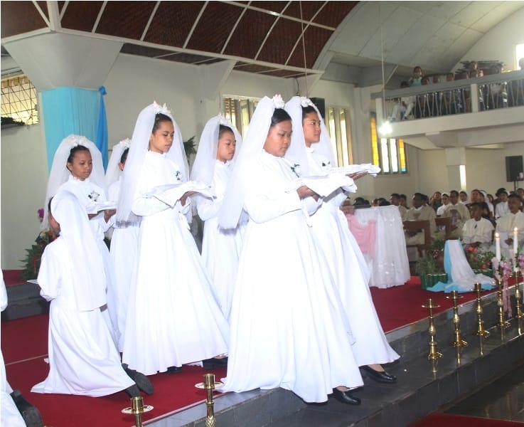 Para suster yang mengikrarkan Profesi Pertama adalah: Sr. M. Felisia dari Paroki Rumbia, Sr. M. Odilia dari Paroki Murnijaya, Sr. M. Ignaz dari Paroki Bengkulu, dan Sr. M. Stefani dari Paroki Metro. ***