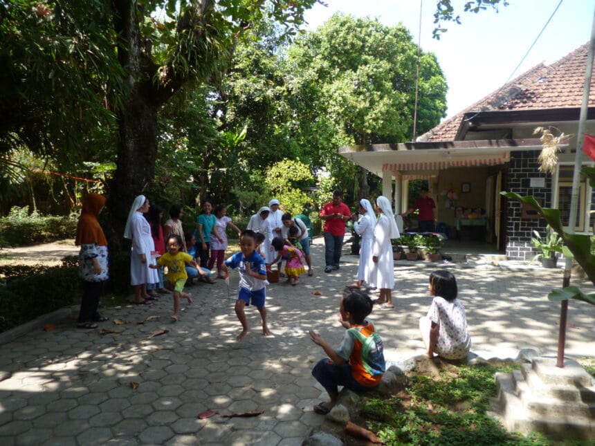 Suasana gembira dan sukacita itulah yang kami rasakan, dalam kebersamaan merayakan dirgahayu RI yang ke 72 bersama warga sapen, jogjakarta. seperti biasa acara diadakan di susteran St.Maria. acara diadakan tepat tanggal 17 Agustus 2017, dimulai pukul 09.30 wib. kami para Suster sudah menyiapkan semua peralatan yang akan dipakai untuk lomba-lomba.