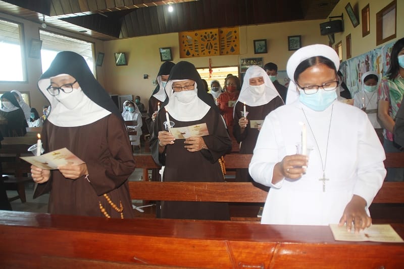Pengikaran janji setia dihadapan Uskup. Setiap perwakilan kongregasi dan sekular. Maju dengan membawa lilin. Mendekati altar. Para saudari lainnya, tetap duduk di bangku masing-masing dengan memegang lilin. Usai Perayaan Ekaristi, dilanjutkan dengan ramah tamah. Perayaan ini disaksikan oleh Suster dari Kongregasi Hati Kudus dan umat sekitar. ***