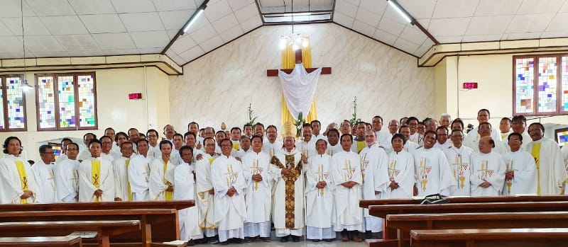 Sebanyak 80 Imam Keuskupan Tanjungkarang membarui janji imamatnya, di Gereja Katolik St. Pius, Gisting, Rabu, 16 April 2019. Perayaan Ekaristi dipimpin oleh Mgr. Yohanes Harun Yuwono.
