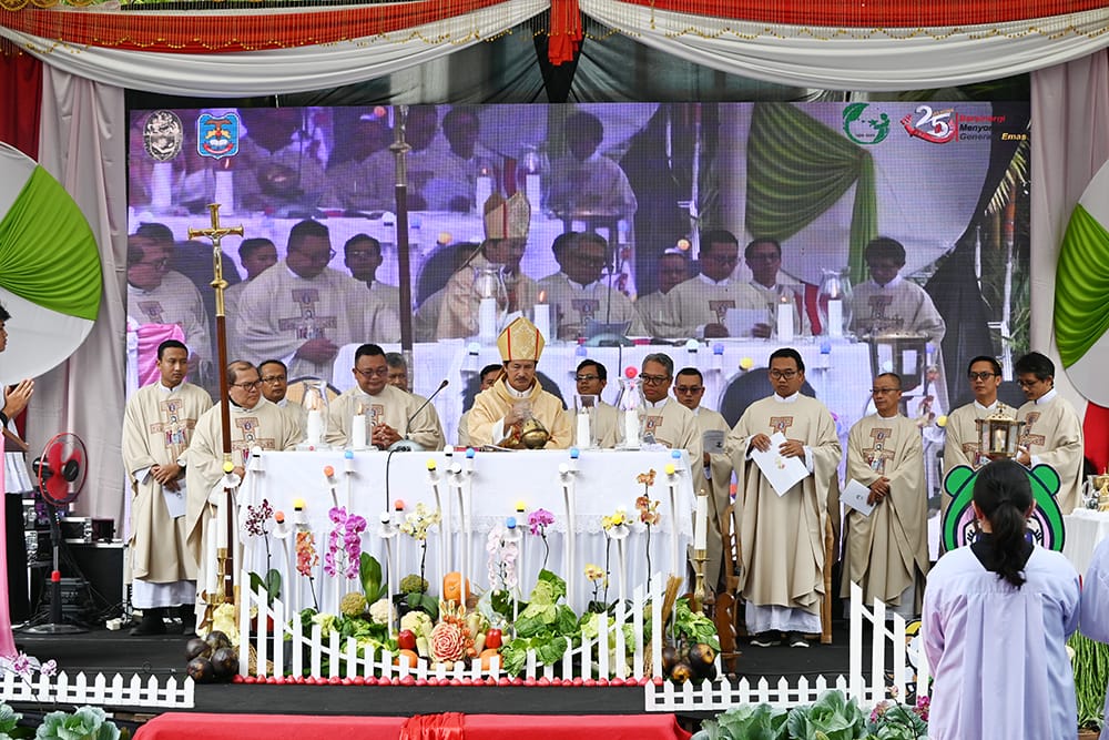 Selain itu, Uskup menekankan pentingnya warisan nilai-nilai luhur sebagai pondasi untuk mencetak generasi emas di masa depan. “Kita ingin mencetak generasi emas. Maka, kita sendiri harus memiliki warisan nilai-nilai luhur, mentalitas dan budaya baru. Itu semua yang akan diteladan oleh para penerus kita. Seperti para pendahulu kita, yang memiliki visi-misi jauh ke depan untuk mempersiapkan penerusnya. Nah… sekarang giliran kita untuk mempersiapkan generasi emas. Maka, marilah kita melakukan hal-hal baik,” ajaknya penuh semangat.