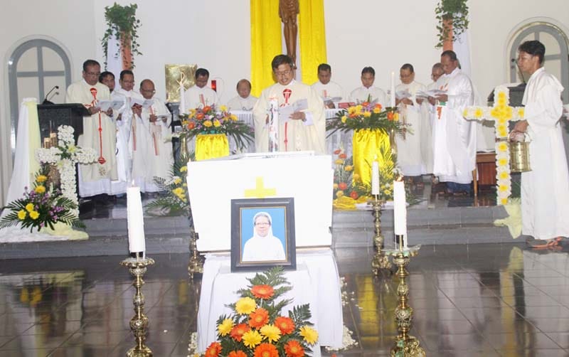 Upacara pemakaman dilaksanakan hari Sabtu, 03 Juni 2017. Ekaristi kudus sebagai penghormatan terakhir dipersembahkan untuk kebahagiaan jiwanya, dipimpin oleh RD Andreas Sutrisno Pastor Paroki St Yusuf Pringsewu, dan beberapa romo. Dalam homilinya RD Sutrisno mengatakan, “Banyak hal yang membuat kita berada dalam situasi terpenjara. Sakit juga bisa membawa kita dalam situasi ini. Kita bisa belajar dari St Paulus, bahwa pengalaman keterpenjaraan bisa menjadi kesempatan untuk tetap bersaksi. Karena meski pun dalam situasi terpenjara, kita tetap memiliki kebebasan hati, batin, iman dan panggilan. Dalam situasi terpenjara kita tetap ingin merasakan kegembiraan. Dari kematian, kita juga belajar memaknai situasi-situasi yang tidak nyaman, karena kita dituntut untuk menjadi saksi Kristus dan saksi iman.”