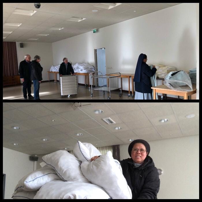 Para suster FSGM di Denekamp, Nederland, dengan sukacita mempersiapkan tempat bagi para pengungsi Ukraina. Masyarakat sekitar termasuk orang-orang muda tergerak hatinya ingin melakukan sesuatu yang bisa mereka lakukan bagi para pengungsi Ukraina itu. Ada yang menyumbang selimut, bantal, minuman, makanan dll.