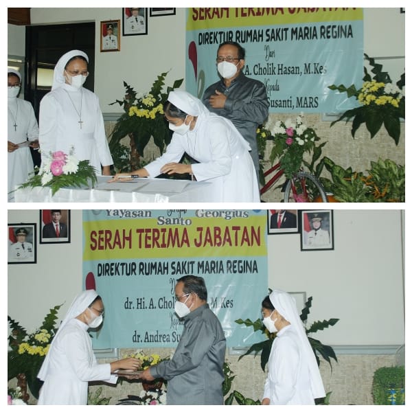 Direktur lama, Dr. Hi. A. Cholik Hasan, M. Kes menyambut baik adanya sertijab ini. Ia sendiri sudah 12 tahun menjabat sebagai Direktur di RS Maria Regina ini. Banyak hal yang telah dilakukannya. Diantaranya, mulai dari peningkatan status: dari klinik menjadi Rumah Sakit. Dan terus berproses dalam memenuhi kewajiban sebagai Rumah Sakit, pengembangan pelayanan, hingga penambahan layanan dengan kerjasama BPJS pada awal tahun 2022 ini.