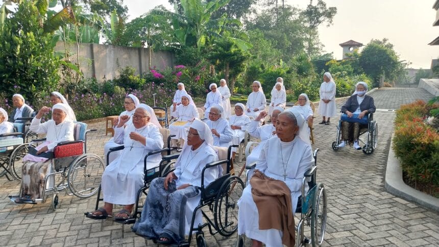 Senin pagi, 12 Agustus 2025 sebanyak 23 suster senior mengikuti senam lansia di halaman belakang Komunitas Vita Gracia, Gisting.
